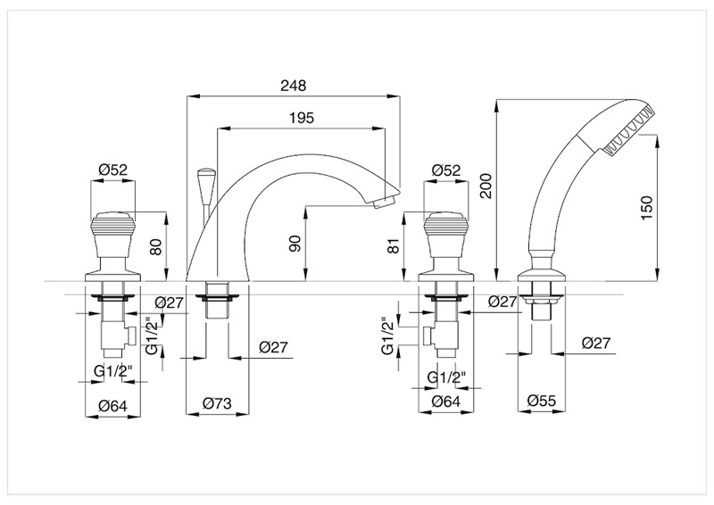 Bugnatese Axo 681 - peremre szerelt 4 üléses kádcsaptelepBugnatese Axo 681 - peremre szerelt 4 üléses kádcsaptelep
