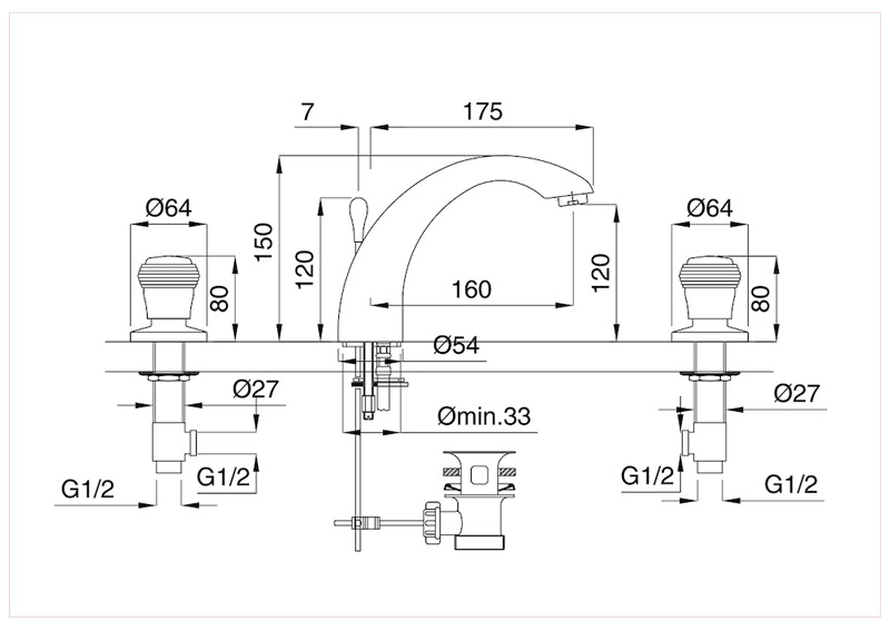 Bugnatese Axo 612 - álló 3 üléses mosdócsaptelep