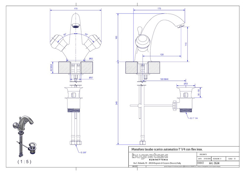 Bugnatese Axo 634 - mosdócsaptelep leeresztővel