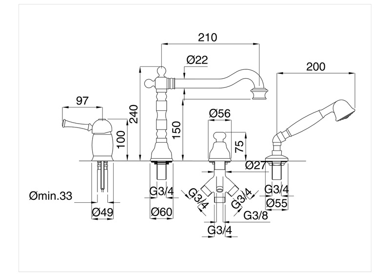 Bugnatese Denver 6455 - peremre szerelhető 4 üléses kádcsaptelepBugnatese Denver 6455 - peremre szerelhető 4 üléses kádcsaptelep