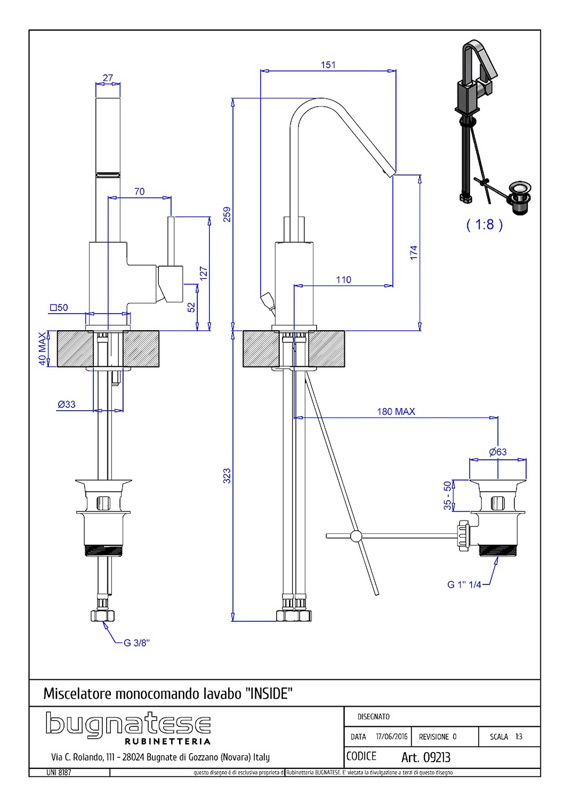 Bugnatese Inside 9213 - mosdócsaptelep leeresztővelBugnatese Inside 9213 - mosdócsaptelep leeresztővel