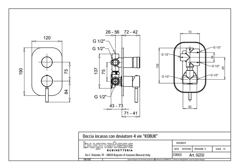 Bugnatese Kobuk 2232 - fal alatti 4 állású zuhanycsaptelepBugnatese Kobuk 2232 - fal alatti 4 állású zuhanycsaptelep