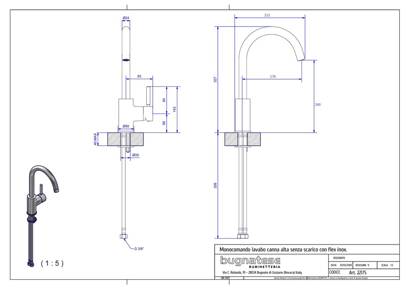 Bugnatese Kobuk 2217SC - magas mosdócsaptelep klikk-klakk leeresztővel
