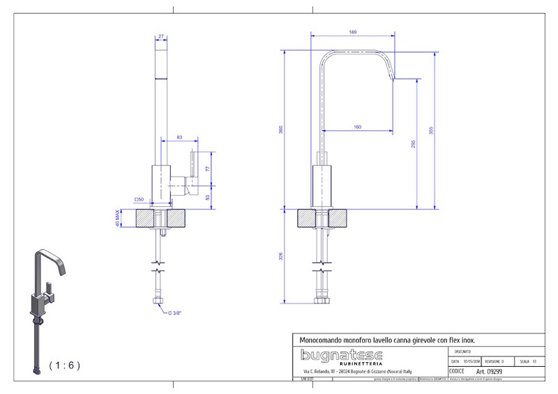 Bugnatese INSIDE 9299 - Álló mosogatócsaptelep leeresztő nélkül