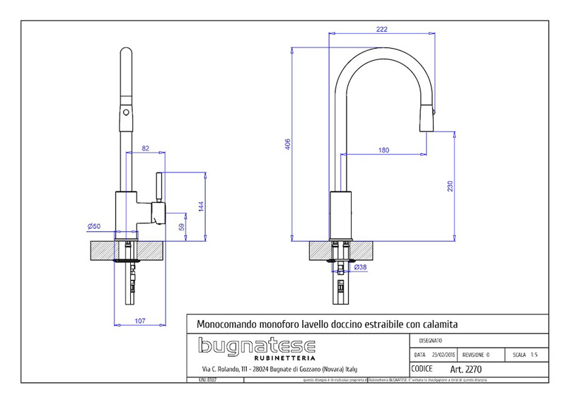 Bugnatese KOBUK 2270 - Kihúzható zuhanyfejes , magas mosogatócsaptelep