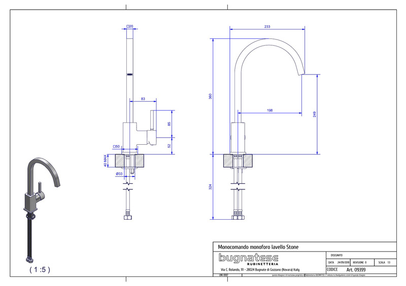 Bugnatese STONE 9399 - Álló mosogatócsaptelep leeresztő nélkül