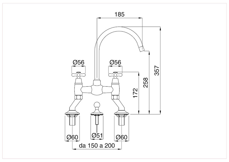 Bugnatese Old'800 - 015 - peremre szerelt 3 üléses mosdócsaptelep