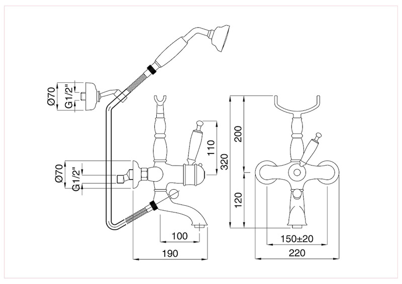 Bugnatese Oxford 6303 - termosztátos kádcsaptelep zuhanyszettel