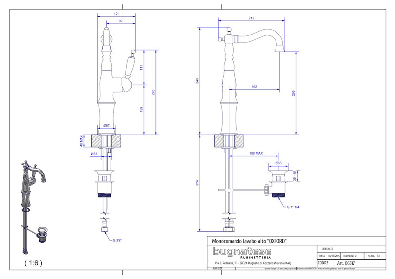 Bugnatese Oxford 6317 - magas mosdócsaptelep leeresztővel
