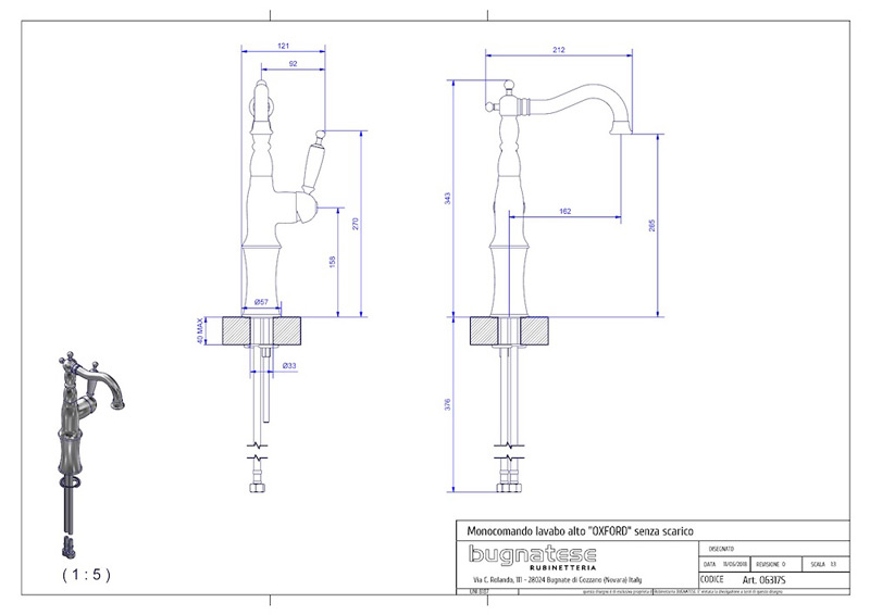 Bugnatese Oxford 6317SC - magasított mosdócsaptelep klikk-klakk leeresztővel