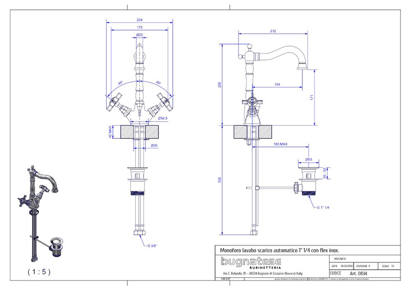 Bugnatese Princeton 834 - mosdócsaptelep leeresztővelBugnatese Princeton 834 - mosdócsaptelep leeresztővel