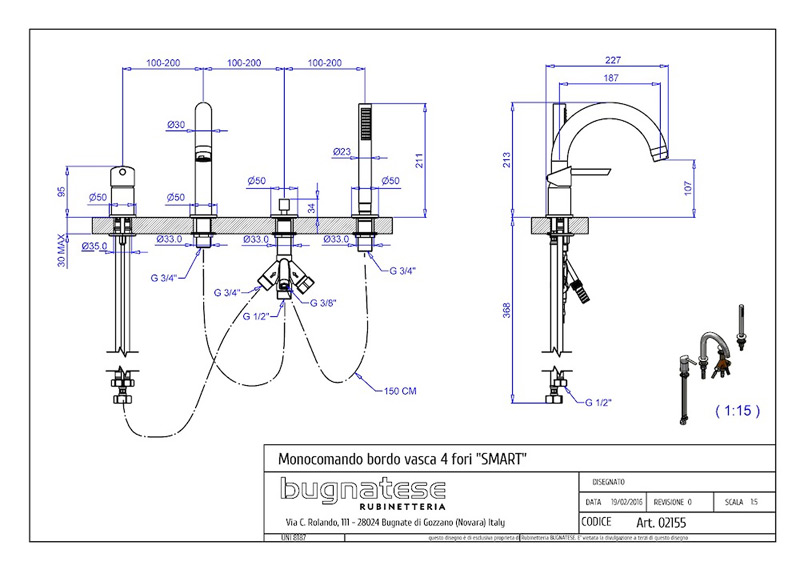 Bugnatese Smart 2155 - peremre szerelt 4 üléses kádcsaptelepBugnatese Smart 2155 - peremre szerelt 4 üléses kádcsaptelep