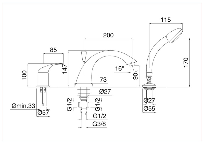 Bugnatese Xara 6550 - 3 üléses kád csaptelep