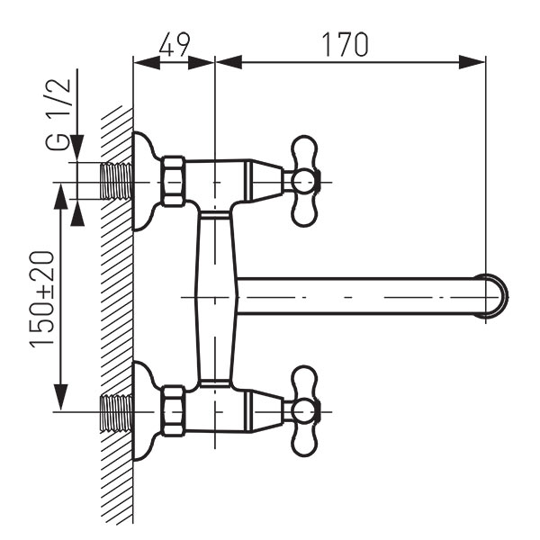 • Z-idom G1/2, kiállások közötti távolság 150 ± 20 mm