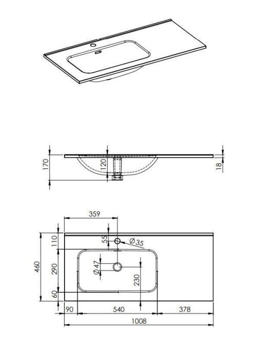 Arezzo design Skappa balos mosdó 100 cm (60+40 cm) AR-145935