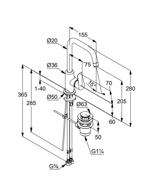 Kludi Pure&Solid egykaros mosdócsap elfordítható kifolyó, lefolyógarnitúrával 340250575