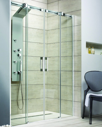 Felsőgörgős zuhanyajtó dupla tolóajtóval, oldalt fix részekkel