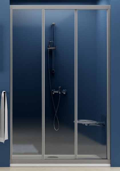 Háromrészes tolóajtós zuhanyajtó, mely ideális három oldalról falazott zuhanyzó lezárására.