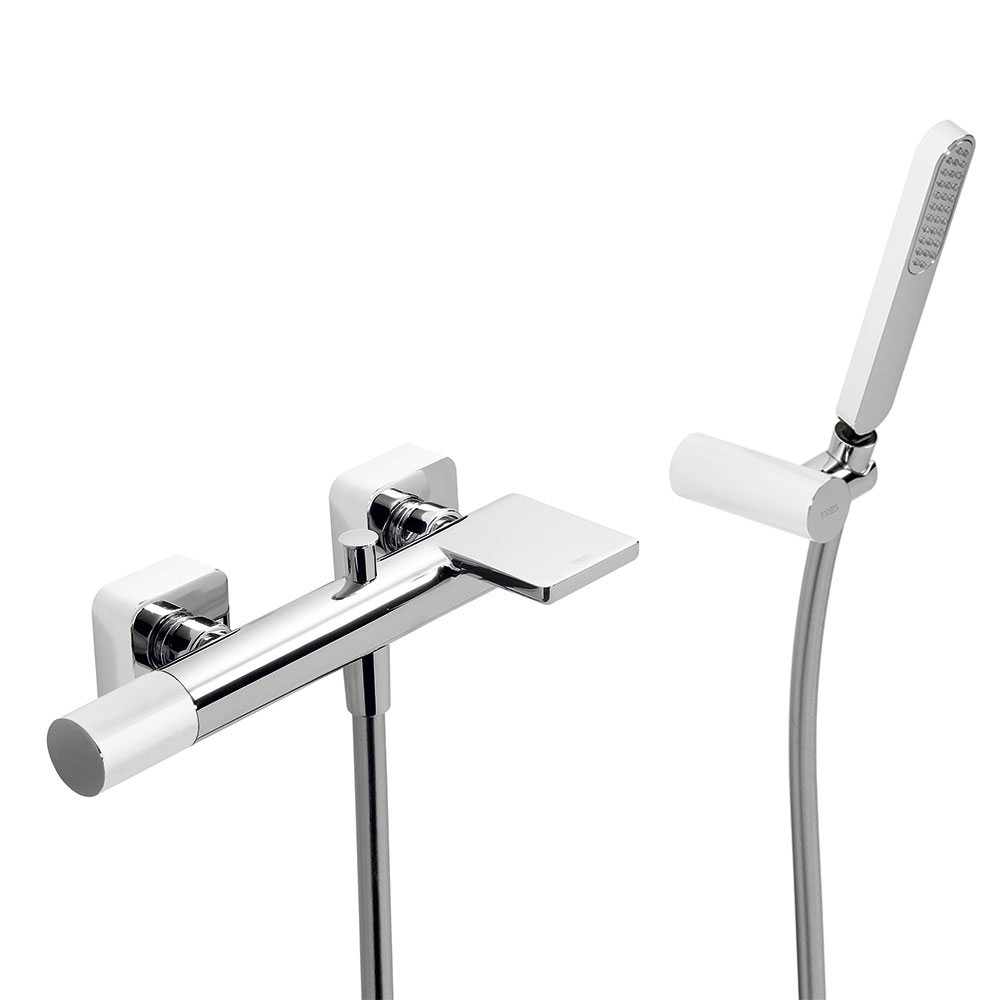 Tres Loft Colors fali kádtöltő és zuhany csaptelep, szatén tömlős kézizuhannyal fehér-chrome 20017001BLTres Loft Colors fali kádtöltő és zuhany csaptelep, szatén tömlős kézizuhannyal fehér-chrome 20017001BL