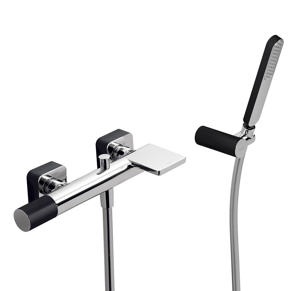 Tres Loft Colors fali kádtöltő és zuhany csaptelep, szatén tömlős kézizuhannyal fekete-chrome 20017001NE