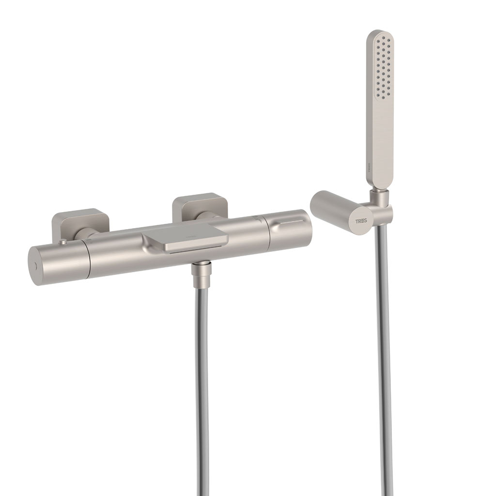 Tres Loft Colors fali termosztátos zuhany csaptelep, cascade kifolyóval, kézizuhannyal, steel  20017409ACTres Loft Colors fali termosztátos zuhany csaptelep, cascade kifolyóval, kézizuhannyal, steel 20017409AC