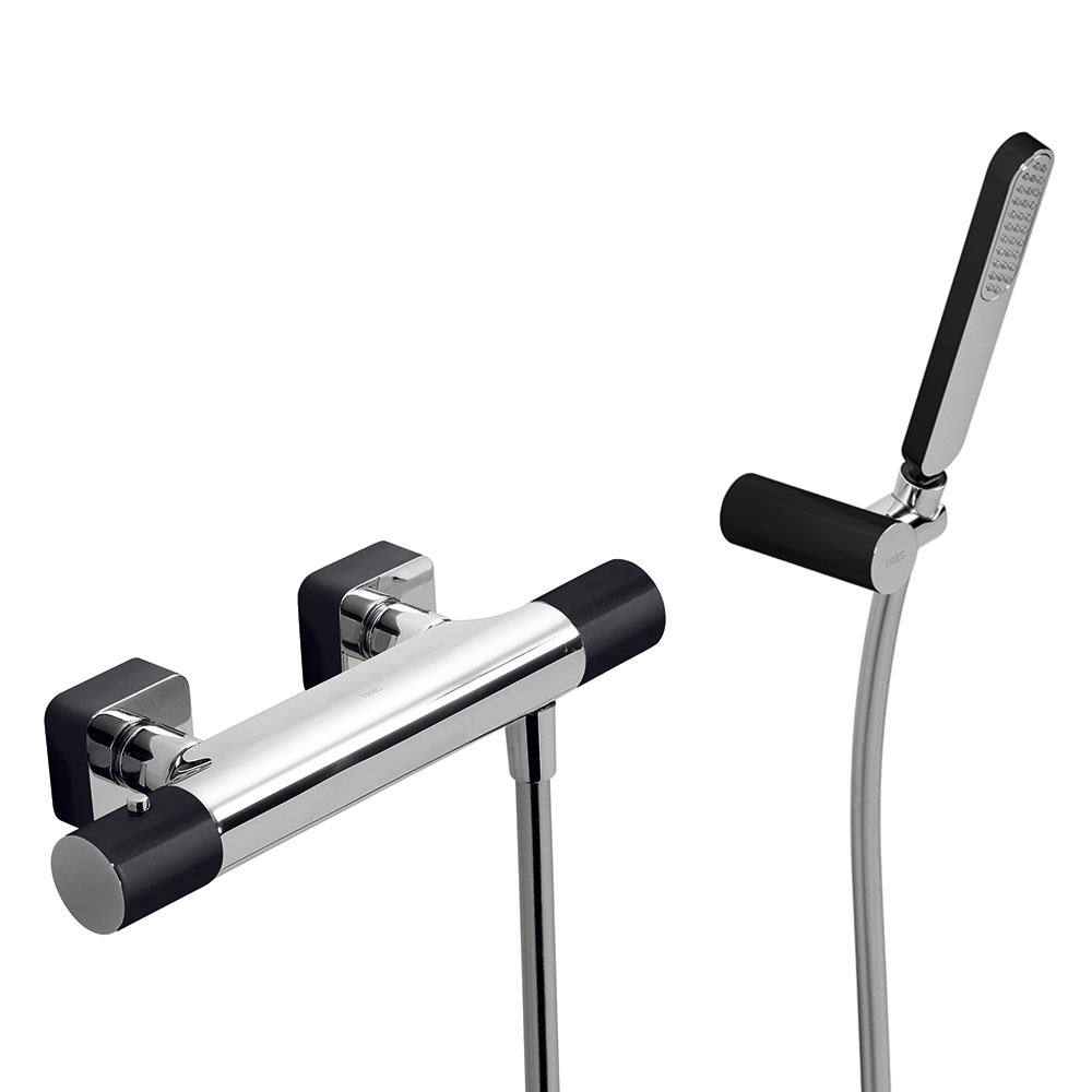 Tres Loft Colors fali termosztátos zuhany csaptelep, kézizuhannyal, fekete-chrome 20016409NE