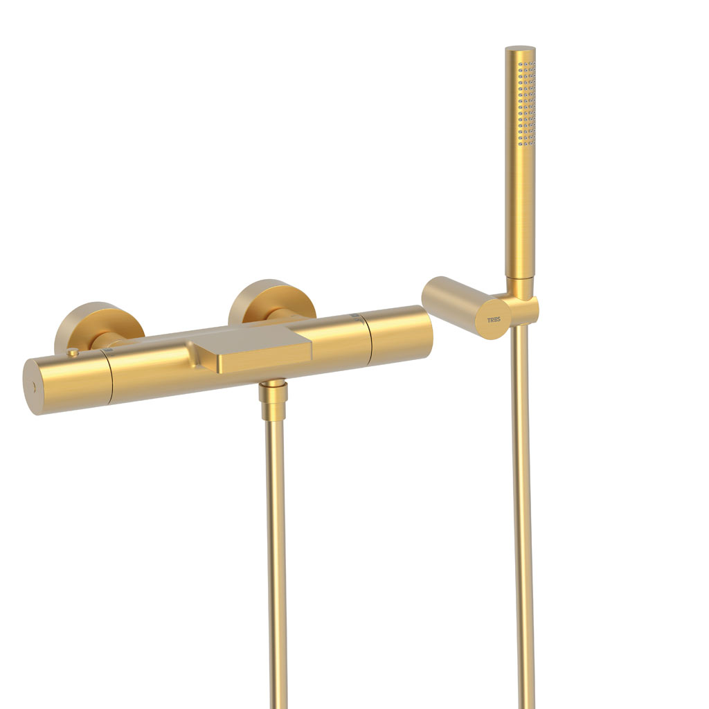 Tres Study Exclusive fali termosztátos zuhany csaptelep, cascade kifolyóval, kézizuhannyal, matt arany 26117209OM