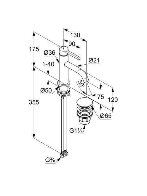 Kludi Nova Fonte Pura 75 egykaros mosdócsaptelep Push-Open leeresztőszelep, matt fekete 202663915