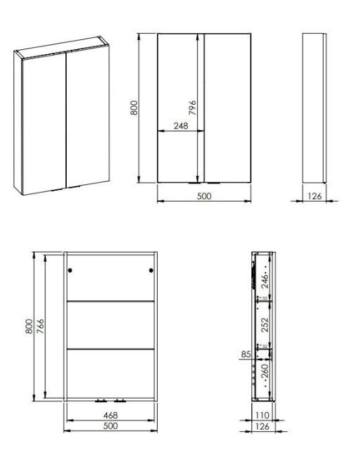 Arezzo design univerzális felsőszekrény 50x80 cm, magasfényű antracit AR-168307