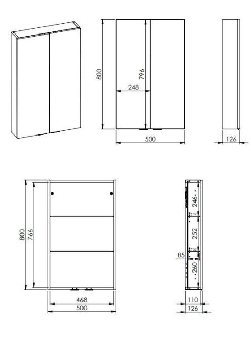 Arezzo design univerzális felsőszekrény 50x80 cm, matt szürke AR-168311