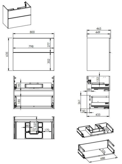Arezzo design Monterey 80 alsószekrény szifonkivágással, 2 fiókkal, canela tölgy AR-167254