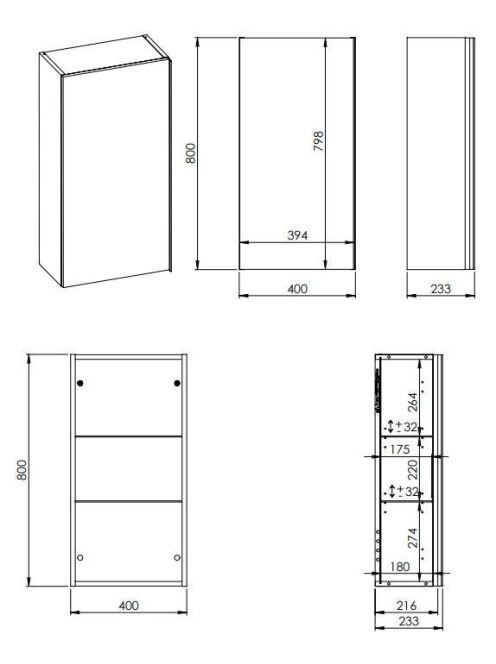 Arezzo design Monterey felsőszekrény 40x21,6x80 cm, 1 ajtóval, matt fehér AR-167612