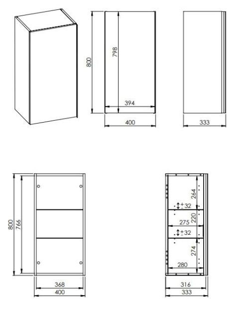 Arezzo design Monterey felsőszekrény 40x80 cm, 1 ajtóval, matt szürke AR-167615